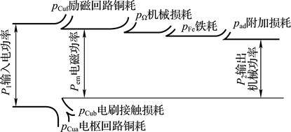 直流電動機工作時,從電網(wǎng)吸收電功率P1,除去電樞回路的銅損耗pCua、電刷接觸損耗pCub及勵磁回路銅耗pCuf后,其余部分功率轉(zhuǎn)變?yōu)殡姌猩系碾姶殴β蔖em。