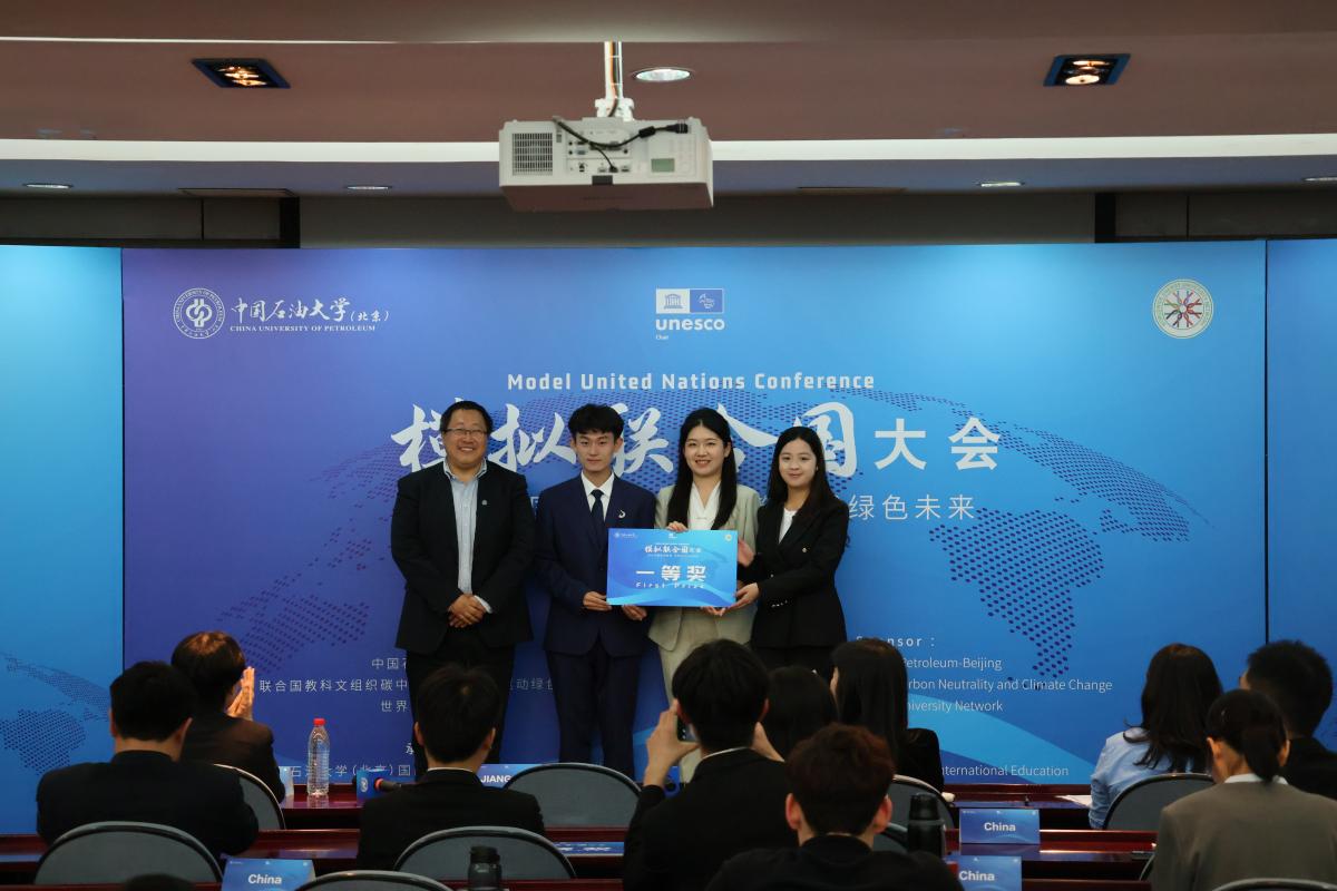 5月7日,以“講好中國(guó)能源故事,共筑全球綠色未來(lái)”為主題的模擬聯(lián)合國(guó)大會(huì)在中國(guó)石油大學(xué)(北京)舉辦。中石大副校長(zhǎng)張廣清,聯(lián)合國(guó)工業(yè)發(fā)展組織投資和技術(shù)促進(jìn)辦公室(中國(guó)・北京)環(huán)境與氣候議題負(fù)責(zé)人姜灝,中科浩博國(guó)際教育科技(北京)有限公司總裁孫中雯,學(xué)校國(guó)際合作與交流處、國(guó)際教育學(xué)院、教務(wù)處、外國(guó)語(yǔ)學(xué)院相關(guān)人員,來(lái)自中國(guó)、巴基斯坦、土庫(kù)曼斯坦、南蘇丹、蒙古、孟加拉國(guó)等24個(gè)國(guó)家的100名青年學(xué)生圍繞氣候變化、能源轉(zhuǎn)型與可持續(xù)發(fā)展等議題展開(kāi)深入對(duì)話。