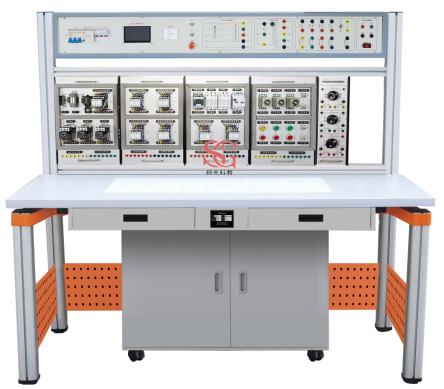 掛箱上已安裝有熔斷器、鈕子開關(guān)、交流接觸器、時(shí)間繼電器、直流接觸器、按鈕開關(guān)、信號(hào)指示燈、熱繼電器等,所有器件均采用國內(nèi)外知名品牌。各種實(shí)訓(xùn)元器件的接線都在接線端子排上進(jìn)行接線,避免了因長期在器件本身進(jìn)行螺絲拆裝而導(dǎo)致元器件的損耗,通過走線槽走線,進(jìn)行工藝布線訓(xùn)練。實(shí)訓(xùn)電路與裝置電源的連接通過安全插座和高可靠護(hù)套結(jié)構(gòu)手槍插連接線,安全快捷。