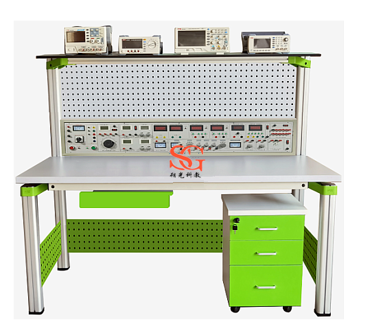 實(shí)驗(yàn)桌一桌兩座,實(shí)驗(yàn)桌桌面配有磁吸式實(shí)訓(xùn)基座,與實(shí)訓(xùn)模塊配套完成實(shí)訓(xùn)。實(shí)驗(yàn)桌后面二支截面尺寸70×70mm桌腳向上延伸,與一次成型鋁壓鑄框架連接構(gòu)件構(gòu)成(非焊接工藝)牢固的支架,與實(shí)訓(xùn)屏、儀器架、電源控制箱組成一個(gè)完整的實(shí)訓(xùn)屏。