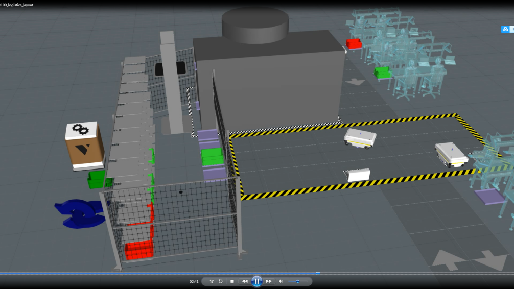 (3)無需編程,面向三維圖形,通過鼠標拖拽三維元件,簡單快捷地部署工業(yè)應用場景并測試運行。