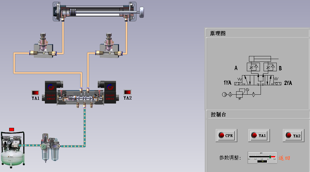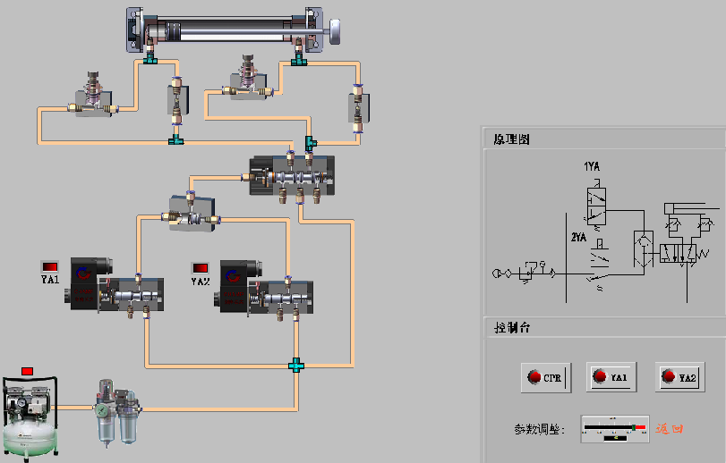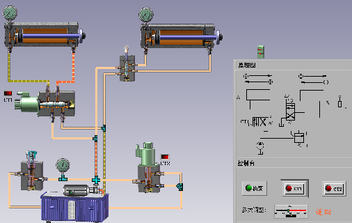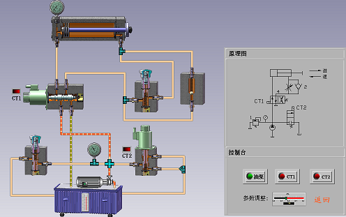 1通過(guò)實(shí)物液壓元器件和液壓組件三維動(dòng)態(tài)畫(huà)面的裝配圖爆炸圖,認(rèn)識(shí)液壓元器件結(jié)構(gòu)、工作原理、功能。 (1)單向閥 (2)調(diào)速閥 (3)二位二通電磁閥(常閉) (4)二位二通電磁閥(常開(kāi)) (5)二位二通行程控制閥 (6)二位三通電磁閥 (7)二位四通電磁閥 (8)節(jié)流閥 (9)三位四通換向閥(O型) (10)三位四通換向閥體(H型) (11)三位四通換向閥體(M型) (12)順序閥 (13)先導(dǎo)式減壓閥 (14)先導(dǎo)式溢流閥 (15)壓力繼電器 (16)液控單向閥 (17)溢流閥 (18)油缸 (19)截止閥 (20)總閥 二位二通電磁閥(常閉) 總閥 2通過(guò)實(shí)物氣動(dòng)元器件及氣動(dòng)組件三維動(dòng)態(tài)畫(huà)面的裝配圖爆炸圖,認(rèn)識(shí)氣動(dòng)元器件結(jié)構(gòu)、工作原理、功能。 2、液壓回路三維動(dòng)態(tài)畫(huà)面演示與控制、液壓回路搭接控制實(shí)驗(yàn) 本系統(tǒng)配置的北京亞控組態(tài)王軟件提供了全套73種(推薦)液壓回路三維立體動(dòng)態(tài)的模擬演示與控制,能在計(jì)算機(jī)里提供液壓回路搭接原理圖、液壓回路三維動(dòng)畫(huà)演示圖,不僅能控制實(shí)驗(yàn)回路的動(dòng)作,而且可以清晰看到用不同顏色演示液壓回路油路的工作動(dòng)態(tài),使學(xué)生能更直觀地學(xué)習(xí)和了解實(shí)驗(yàn)內(nèi)容,實(shí)現(xiàn)了實(shí)驗(yàn)過(guò)程的可視化、人性化。(如下圖部分示例) 單級(jí)調(diào)壓回路 行程閥卸荷回路 節(jié)流閥進(jìn)油節(jié)流調(diào)速回路 單向閥鎖緊回路 行程閥控制順序動(dòng)作回路 液壓馬達(dá)制動(dòng)回路 [1] 壓力控制回路(壓力控制回路28種—帶仿真軟件) (1)調(diào)壓回路: ①單級(jí)調(diào)壓回路 (帶仿真軟件) ②單級(jí)遠(yuǎn)程調(diào)壓回路 (帶仿真軟件) ③兩級(jí)調(diào)壓回路 (帶仿真軟件) ④兩級(jí)遠(yuǎn)程調(diào)壓回路 (帶仿真軟件) ⑤三級(jí)調(diào)壓回路 (帶仿真軟件) ⑥雙壓回路 (帶仿真軟件) (2)減壓回路 ①一級(jí)減壓回路 (帶仿真軟件) ②二級(jí)減壓回路 (帶仿真軟件) (3)保壓回路 ①單向閥保壓回路 (帶仿真軟件) ②液控單向閥保壓回路 (帶仿真軟件) ③換向閥保壓回路 (帶仿真軟件) (4)卸荷回路 ①三位四通M型中位機(jī)能換向閥卸荷回路 (帶仿真軟件) ②三位四通H型中位機(jī)能換向閥卸荷回路 (帶仿真軟件) ③二位二通電磁換向閥卸荷回路 (帶仿真軟件) ④先導(dǎo)式溢流閥卸荷回路 (帶仿真軟件) ⑤行程閥卸荷回路 (帶仿真軟件) ⑥壓力控制卸荷雙泵供油回路 (帶仿真軟件) ⑦電磁閥控制卸荷雙泵供油回路 (帶仿真軟件) (5)平衡回路 ①順序閥平衡回路 (帶仿真軟件) ②液控單向閥平衡回路 (帶仿真軟件) ③單向節(jié)流閥平衡回路 (帶仿真軟件) ④液控單向閥和單向節(jié)流閥的平衡回路 (帶仿真軟件) ⑤平衡與保壓回路 (帶仿真軟件) ⑥液控順序閥平衡回路 (帶仿真軟件) (6)緩沖回路 ①調(diào)速閥緩沖回路 (帶仿真軟件) ②溢流閥緩沖回路 (帶仿真軟件) [2] 速度控制回路 (速度控制回路25種—帶仿真軟件) (1)節(jié)流調(diào)速回路 ①節(jié)流閥進(jìn)油節(jié)流調(diào)速回路 (帶仿真軟件) ②調(diào)速閥進(jìn)油節(jié)流調(diào)速回路 (帶仿真軟件) ③節(jié)流閥回油節(jié)流調(diào)速回路 (帶仿真軟件) ④節(jié)流閥旁路節(jié)流調(diào)速回路 (帶仿真軟件) ⑤調(diào)速閥旁路節(jié)流調(diào)速回路 (帶仿真軟件) ⑥單節(jié)流閥雙向進(jìn)油節(jié)流調(diào)速回路 (帶仿真軟件) ⑦單節(jié)流閥雙向回油節(jié)流調(diào)速回路 (帶仿真軟件) ⑧雙節(jié)流閥雙向進(jìn)油節(jié)流調(diào)速回路 (帶仿真軟件) ⑨雙節(jié)流閥雙向回油節(jié)流調(diào)速回路 (帶仿真軟件) ⑩有背壓閥的進(jìn)油節(jié)流調(diào)速回路 (帶仿真軟件) ⑾調(diào)速閥回油節(jié)流調(diào)速回路 (帶仿真軟件) (2)增速回路 ①單向閥控制差動(dòng)連接增速回路 (帶仿真軟件) ②二位三通電磁換向閥差動(dòng)連接增速回路 (帶仿真軟件) (3)速度變換回路 ①用行程閥的快慢速換接回路 (帶仿真軟件) ②二位二通電磁閥差動(dòng)連接速度變換回路 (帶仿真軟件) ③二位三通電磁閥差動(dòng)連接速度變換回路 (帶仿真軟件) ④調(diào)速閥串聯(lián)速度變換回路 (帶仿真軟件) ⑤調(diào)整閥并聯(lián)進(jìn)油控制速度變換回路 (帶仿真軟件) ⑥調(diào)整閥并聯(lián)回油控制速度變換回路 (帶仿真軟件) ⑦雙向速度變換回路 (帶仿真軟件) ⑧進(jìn)油控制速度變換回路 (帶仿真軟件) ⑨回油控制速度變換回路1 (帶仿真軟件) ⑩快慢速轉(zhuǎn)換回路 (帶仿真軟件) ⑾回油控制速度變換回路2 (帶仿真軟件) [3] 方向控制回路(方向控制回路6種—帶仿真軟件) (1)換向回路 ①二位四通電磁閥控制連續(xù)往復(fù)運(yùn)動(dòng)回路 (帶仿真軟件) ②三位四通電磁閥控制連續(xù)往復(fù)運(yùn)動(dòng)回路 (帶仿真軟件) (2)鎖緊回路 ①三位四通電磁換向閥O型中位機(jī)能鎖緊回路(帶仿真軟件) ②單向閥鎖緊回路 (帶仿真軟件) ③三位四通電磁換向閥M型中位機(jī)能鎖緊回路(帶仿真軟件) ④液控單向閥鎖緊回路 (帶仿真軟件) [4] 多缸控制回路(多缸控制回路11種—帶仿真軟件) (1)順序動(dòng)作回路 ①壓力繼電器控制順序動(dòng)作回路 (帶仿真軟件) ②單順