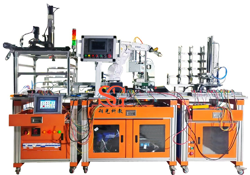 整體外觀采用雙拼色搭配,主體面版采用深灰色,局部以黃色作為點綴?蚣芙Y(jié)構(gòu)主要采用≥70×70mm鋁合金型材搭建而成,型材有圓角,型材凹槽有包邊,型材桌面采用懸浮式工作臺設(shè)計,桌面四周有圓角型材包邊。支撐腳底部帶有萬向腳輪。實訓臺下方四周都采用封門設(shè)計,前后面板采用帶鎖的可拆卸結(jié)構(gòu)設(shè)計,內(nèi)部可放置電源控制柜、資料夾、機器人控制柜以及氣站等單元。