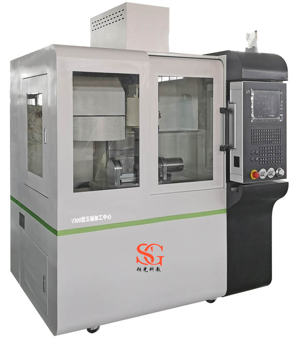 SG-V300型五軸加工中心機(jī)床是我們自主研發(fā)制造的工作臺(tái)搖籃翻轉(zhuǎn)式五軸聯(lián)動(dòng)機(jī)床。采用GSK25i數(shù)控系統(tǒng)。