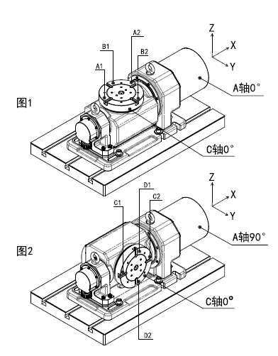 C軸:由伺服電機(jī)驅(qū)動(dòng)工作臺(tái)作360º回轉(zhuǎn),當(dāng)回轉(zhuǎn)到指定位置后,伺服電機(jī)制動(dòng)。需要轉(zhuǎn)動(dòng)時(shí),再由伺服電機(jī)驅(qū)動(dòng)工作臺(tái)回轉(zhuǎn)。