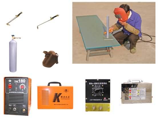 2、電焊配置:電焊機、電焊鉗、手套、服裝、電纜、手提式面罩、2.5電焊條、焊接工作臺。