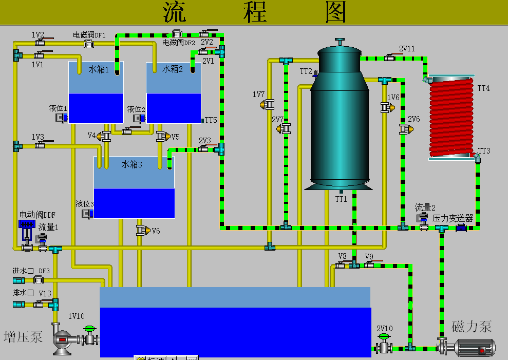 過程控制系統(tǒng)實驗裝置采用西門子的現場總線過程控制系統(tǒng),監(jiān)控軟件采用SIMATIC WINCC。