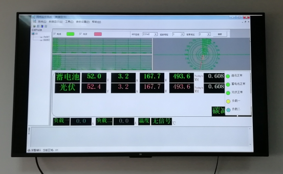 在天氣晴朗的白天,系統(tǒng)運行在微網(wǎng)模式并在補充儲能電池容量的同時將多余電量通過逆變系統(tǒng)送入電網(wǎng),到夜間再將儲能電池電能通過儲能逆變器送入電網(wǎng)以彌補由于夜間網(wǎng)端負荷過大造成的電網(wǎng)電壓過低,在儲能電池不夠用時,系統(tǒng)將轉(zhuǎn)入正常模式,一邊自行彌補儲能電池的虧空,一邊通過系統(tǒng)向負載供電。