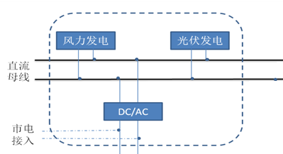 由風(fēng)力發(fā)電機組、太陽能電池方陣、風(fēng)力及光伏控制系統(tǒng)、儲能控制系統(tǒng)所組成的微網(wǎng)發(fā)電系統(tǒng)。