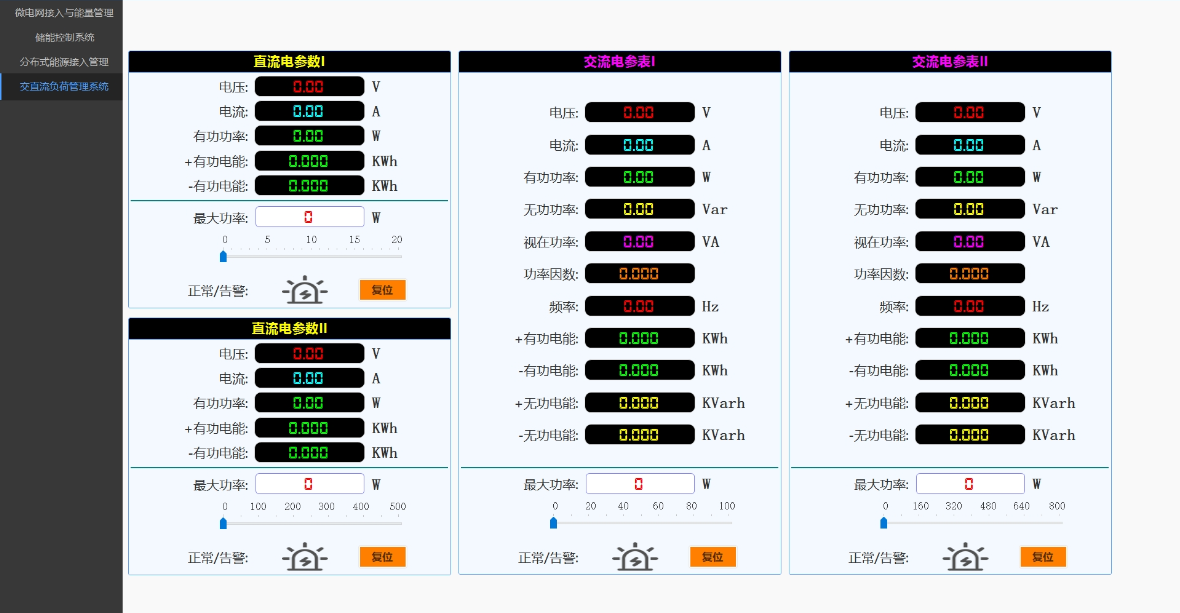 ² 監(jiān)測(cè)內(nèi)容:對(duì)微電網(wǎng)的實(shí)時(shí)運(yùn)行和報(bào)警信息進(jìn)行全面監(jiān)控,并對(duì)微電網(wǎng)進(jìn)行統(tǒng)計(jì)和分析,實(shí)現(xiàn)對(duì)微電網(wǎng)參數(shù)的監(jiān)控。