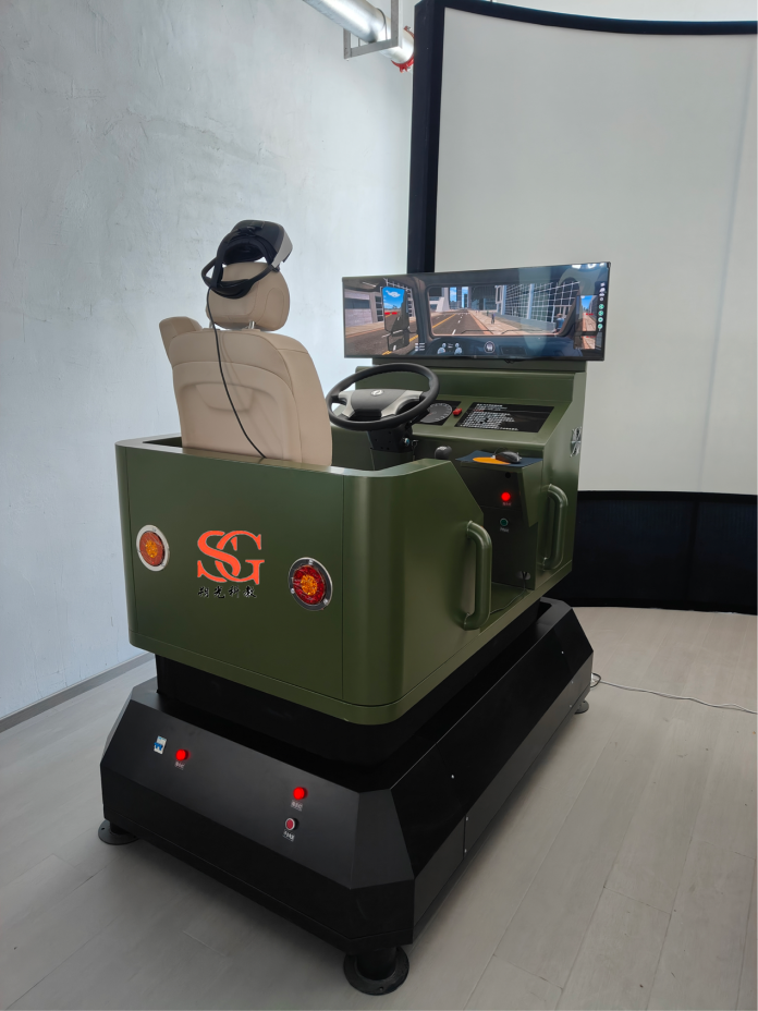 ③六自由度平臺(tái)(座椅)在車(chē)輛行駛中產(chǎn)生與地形起伏相一致的顛簸,使車(chē)載人員練習(xí)時(shí)具有實(shí)車(chē)行駛中的前傾、側(cè)滑、碰撞、震動(dòng)、淤陷、涉水等感覺(jué),便于維護(hù),能夠安全合理地進(jìn)行緊急停止。