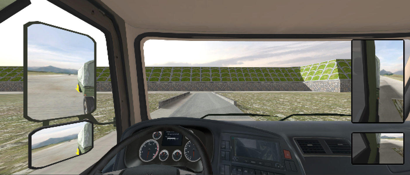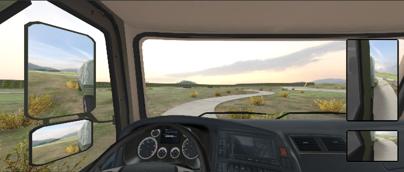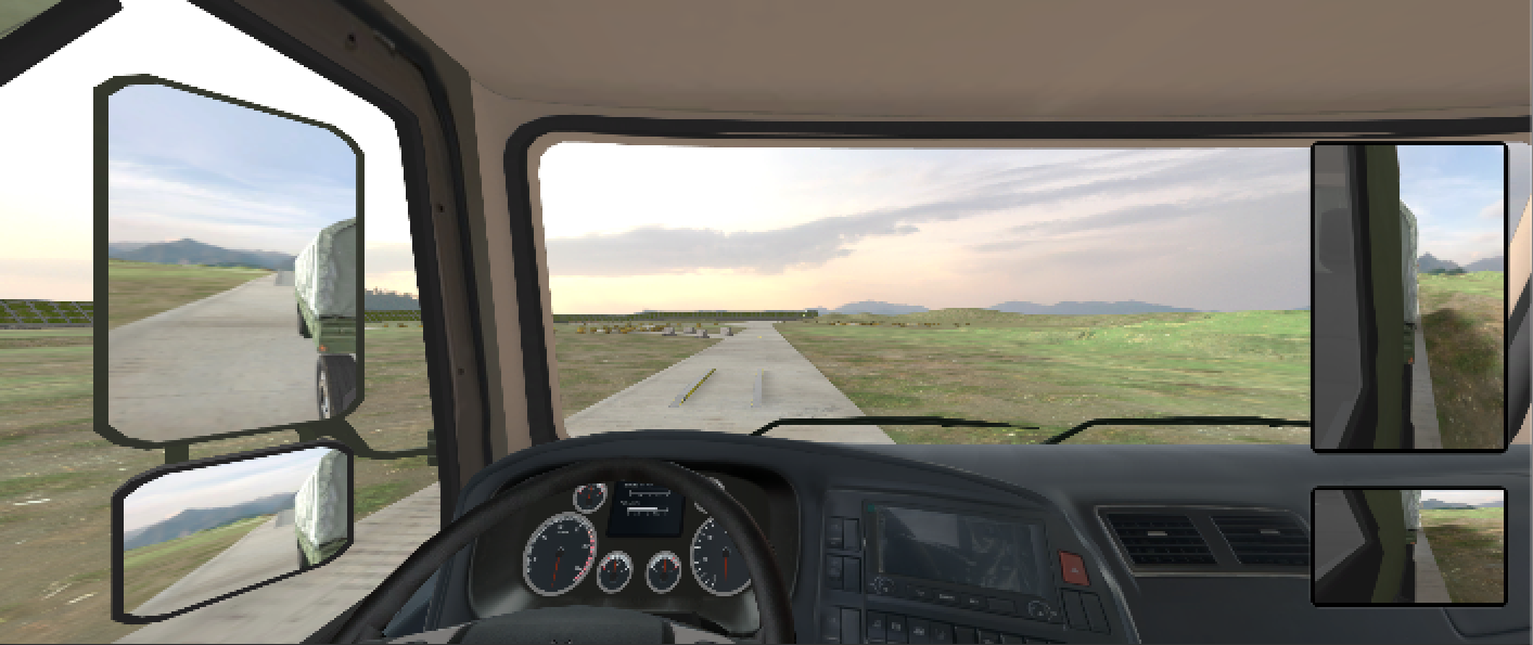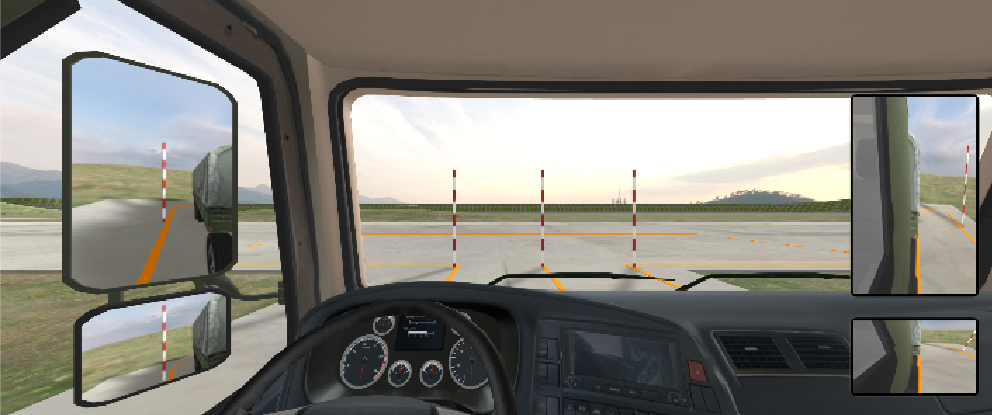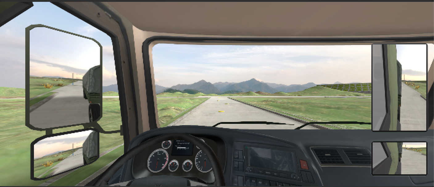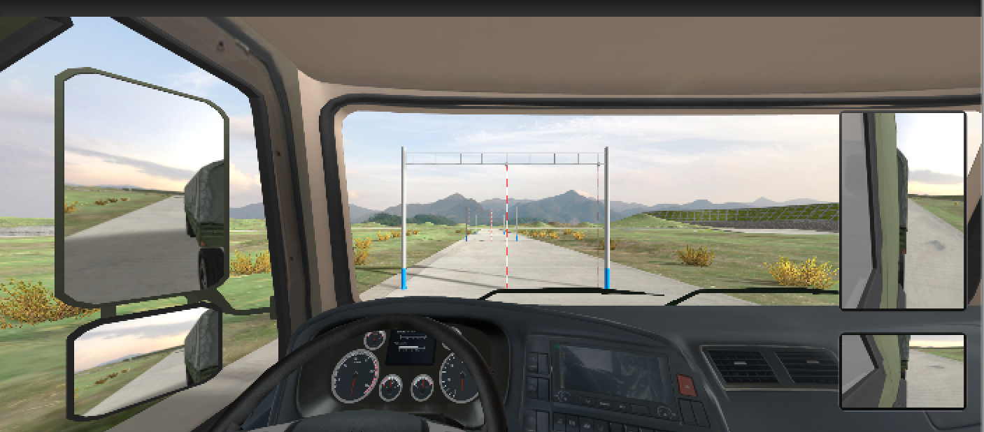 ①前方視景、左右后視鏡視景圖像與實(shí)車駕駛員圖像視角一致。左右后視鏡視景可調(diào)。