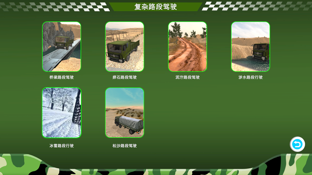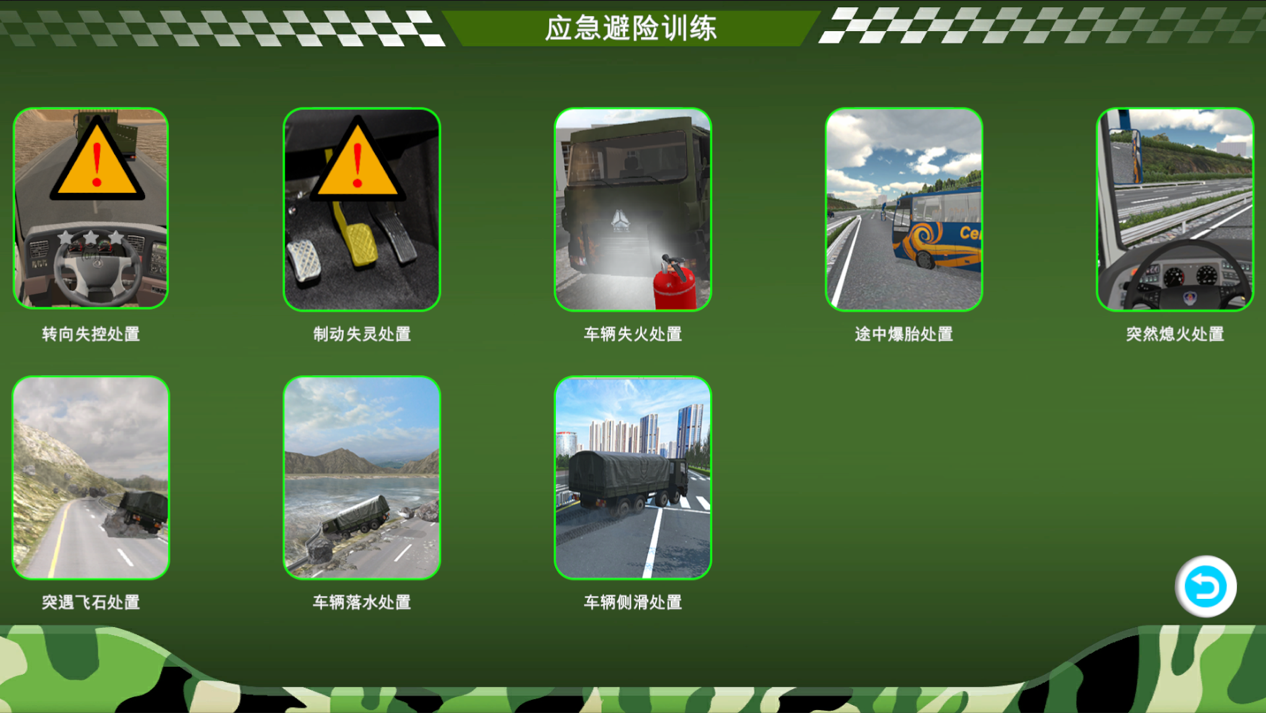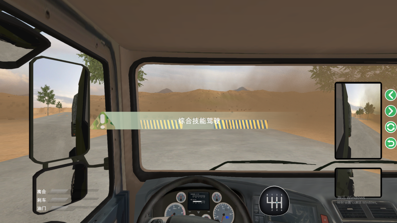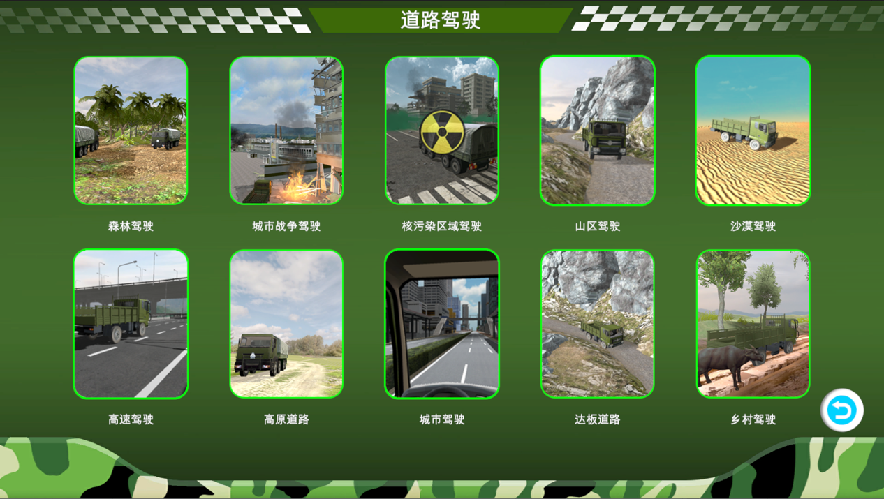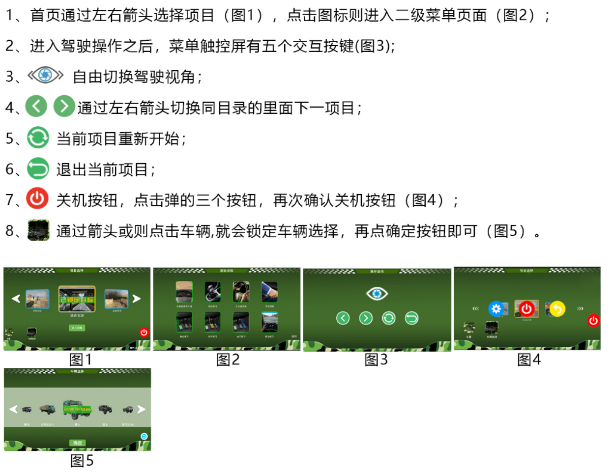 2.道路課目駕駛模擬練習(xí),主要包括、森林路段、一般道路、城市道路、高速公路、山區(qū)道路、鄉(xiāng)村道路、沙漠戈壁地區(qū)、草原荒漠地區(qū)、高原道路、達(dá)坂路等10個(gè)課目。