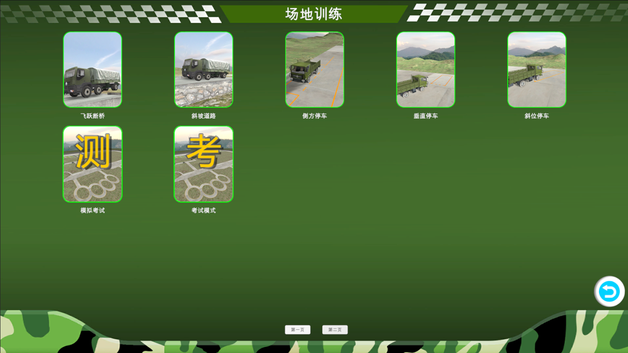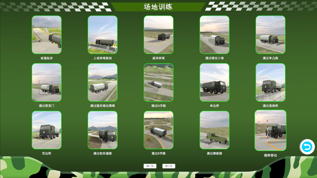 1.場(chǎng)地駕駛典型課目駕駛模擬練習(xí),主要包括坡道起步、上坡轉(zhuǎn)彎換擋、直角轉(zhuǎn)彎、通過(guò)錯(cuò)位小巷、通過(guò)限寬門、通過(guò)圓形錯(cuò)位障礙、通過(guò)N字路、單邊橋、雙邊橋、通過(guò)蛇形道路、通過(guò)8字路、通過(guò)橫斷路、通過(guò)單凸路、通過(guò)高架橋、倒庫(kù)移位、飛躍斷橋、斜坡道路、側(cè)方停車、垂直停車、斜位停車、模擬考試、考試模擬20個(gè)課目。