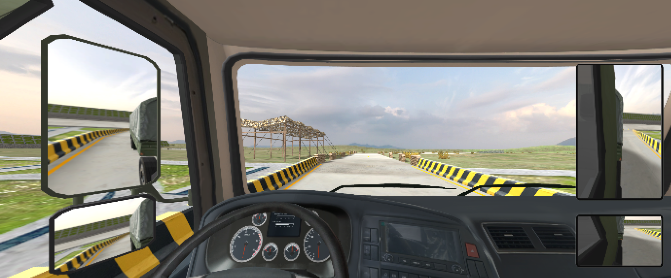 2.動(dòng)力系統(tǒng):與實(shí)車一致,滿足駕駛模擬交互操作需要?膳c泥濘路段、卵石路段、高速公路三種地面依據(jù)路面工況標(biāo)準(zhǔn)進(jìn)行交互,可仿真三種地面對(duì)輪胎的作用效果,如輪胎沉陷、側(cè)滑、地面紋理變化。 |