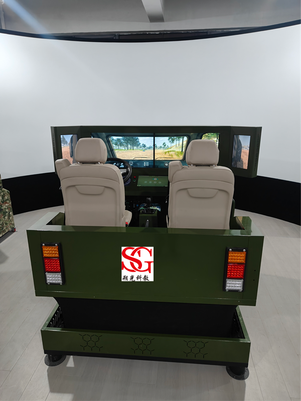 ③三自由度平臺(tái)(座椅)在車(chē)輛行駛中產(chǎn)生與地形起伏相一致的顛簸,使車(chē)載人員練習(xí)時(shí)具有實(shí)車(chē)行駛中的前傾、側(cè)滑、碰撞、震動(dòng)、淤陷、涉水等感覺(jué),便于維護(hù),能夠安全合理地進(jìn)行緊急停止。
