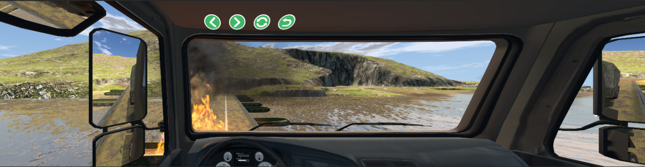 2.動(dòng)力系統(tǒng):與實(shí)車(chē)一致,滿(mǎn)足駕駛模擬交互操作需要?膳c泥濘路段、卵石路段、高速公路三種地面依據(jù)路面工況標(biāo)準(zhǔn)進(jìn)行交互,可仿真三種地面對(duì)輪胎的作用效果,如輪胎沉陷、側(cè)滑、地面紋理變化。 |