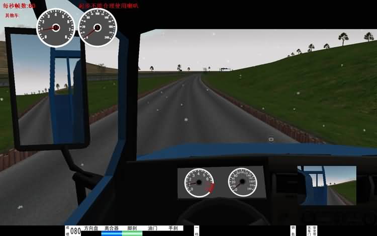 3、訓(xùn)練天氣選擇:學(xué)員可以選擇"白天"、"雪天"、霧天"、"雨天"及"黑夜",體會(huì)不同天氣狀況下的駕駛特點(diǎn)(例如,雪天路面極滑,霧天視線極其不好等)。