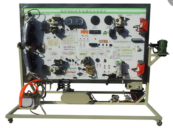 該設備采用卡羅拉/帕薩特整車電器實物為基礎,充分展示汽車發(fā)動機防盜系統(tǒng)、儀表系統(tǒng)、燈光系統(tǒng)、雨刮系統(tǒng)、喇叭系統(tǒng)、點火系統(tǒng)、電動車窗系統(tǒng)、電動門鎖、音響系統(tǒng)、起動系統(tǒng)和充電系統(tǒng)等汽車電器各系統(tǒng)的組成結構和工作過程。