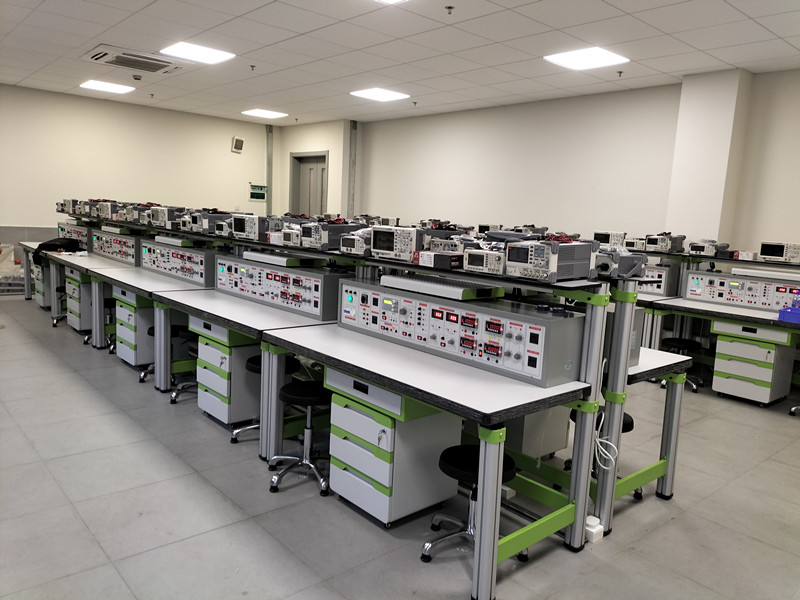本實訓臺主要由實訓主機箱、儀器架、電源控制箱、獨立實訓電路模塊、實訓桌(含磁吸式實訓基座)、儲存柜、學生凳等組成。