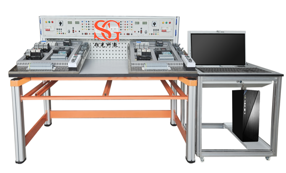 鋼制結(jié)構(gòu),表面氧化噴塑處理,電源輸出包含固定交流輸出:三相五線380V 接插式2組、220V插座式2組,均通過組合開關(guān)進行關(guān)斷;可調(diào)直流輸出: 0~24V/2A連續(xù)可調(diào)2組(帶有指針電壓、指針電流表實時監(jiān)控電源變化);固定DC24V/2A電源2組;提供降壓啟動電阻6個,能耗制動電阻2只,提供整流二極管1N5408四個,用于能耗制動電路。另提供單相220V單元插座用于給電腦的供電。 |