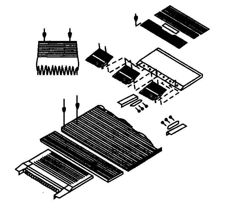 (7)梯級(jí):整體壓鑄梯級(jí):如下圖所示,整體壓鑄梯級(jí)系鋁合金壓鑄,腳踏板和起步板鑄有筋條,起防滑作用和相鄰梯級(jí)導(dǎo)向作用。這種梯級(jí)的特點(diǎn)是重量輕,外觀質(zhì)量高。