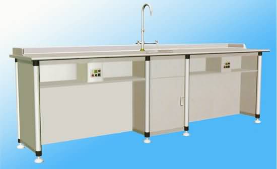 9、實驗臺桌:臺面采用人造石或耐腐蝕理化板、彎曲防火板,柜身采用三聚氰胺浸漬飾面板。