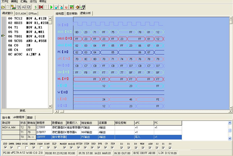 系統(tǒng)提供兩種控制器方式,即微程序控制器和組合邏輯控制器。在微程序控制器中,系統(tǒng)能提供在線編程,實時修改程序,顯示程序并調(diào)試進行的操作環(huán)境。組合邏輯控制器,已下載有一套完整的實驗方案,用戶也可使用CPLD 工具在PC 機上進行自動化設(shè)計。微程序控制器和組合邏輯控制器兩種類型都有流水和非流水兩種方案。