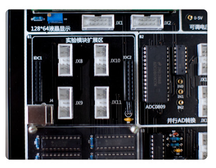 實驗設(shè)備將所有實驗?zāi)K所需的電源已經(jīng)內(nèi)部連好,用戶只要連接所需信號線即可.而且改掉了以前每個信號單獨連接的模式,采用IDC10接口,排線連接,大小減少了連線數(shù)量和復(fù)雜度.核心板也增加了有機玻璃保護,防止核心模塊人為的靜電損壞.核心模塊所有開放的I/O都增加了限流電阻,增強了核心模塊的安全性和可靠性.