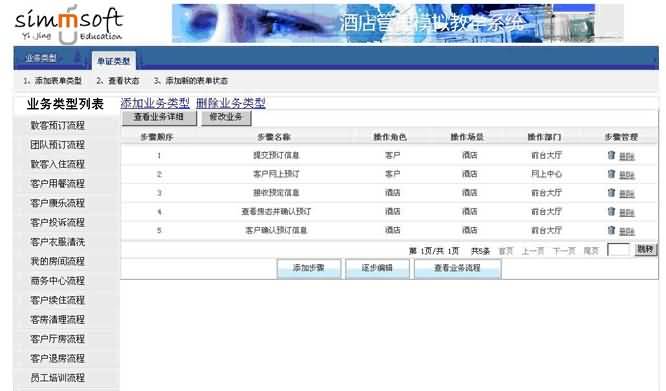 酒店模擬教學軟件在模擬酒店全單據(jù)、全流程業(yè)務(wù)處理的基礎(chǔ)上,根據(jù)當今最新的教學需求,融合最新學校教學要求,結(jié)合酒店管理行業(yè)實際情況,真實模擬了酒店內(nèi)部管理、酒店對外宣傳、酒店內(nèi)部協(xié)調(diào)、酒店市場等角度。從酒店推廣環(huán)節(jié)開始,全面操練酒店核心業(yè)務(wù)流程。