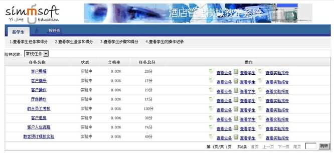 本產(chǎn)品借鑒國內(nèi)外先進的酒店業(yè)務(wù)模型和管理經(jīng)驗,結(jié)合學校老師教學實驗的的真實需求,以酒店實際的業(yè)務(wù)為核心,為學生提供大量的酒店實際學習案例及操作案例。并為教師提供大量的酒店實驗?zāi)P,教師可以自行選擇、組合流程組成學生的實驗,使教師能靈活的進行實驗安排。該系統(tǒng)還自帶評測系統(tǒng),如教師有需要,系統(tǒng)會根據(jù)自帶案例答案,對學生的所有操作進行考評。并自動生成實驗報告。