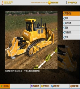 基礎(chǔ)知識(shí):含有與設(shè)備相對(duì)應(yīng)的理論知識(shí)學(xué)習(xí)、安全操作規(guī)程、操作注意事項(xiàng)等文字語音講解。使操作者對(duì)混凝土推土機(jī)有一定的了解。