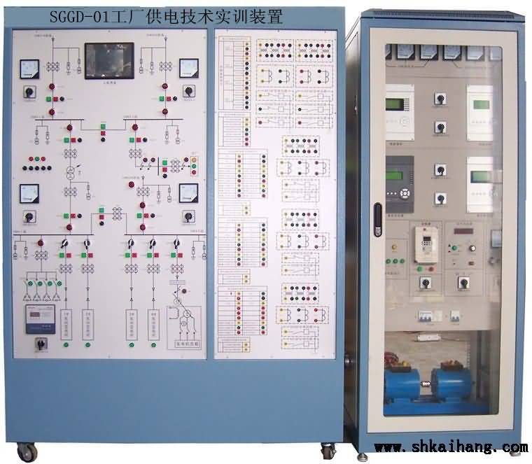 "SGGD-01工廠供電技術實訓裝置"是根據(jù)機械工業(yè)職業(yè)技能鑒定指導中心編寫的《高級電工技術》、《電工基礎(高級工適用)》、《電工技師培訓教材》結合《工廠供電》和《供配電技術》課程研制生產(chǎn)的。主要對教材中的35kV總降壓變電所、10kV高壓變電所及車間用電負荷的供配電線路中涉及的微機繼電保護裝置、備用電源自動投入裝置、無功自動補償裝置、智能采集模塊以及工業(yè)人機界面等電氣一次、二次、控制、保護等重點教學內容進行設計開發(fā)的,通過在本實訓裝置中的技能訓練能在深入理解專業(yè)知識的同時,培養(yǎng)學生的實踐技能。并且本套實訓裝置還有利于學生對變壓器、電動機組、電流互感器、電壓互感器、模擬表記、數(shù)宇電秒表及開關元器件工作特性和接線原理的理解和掌握。