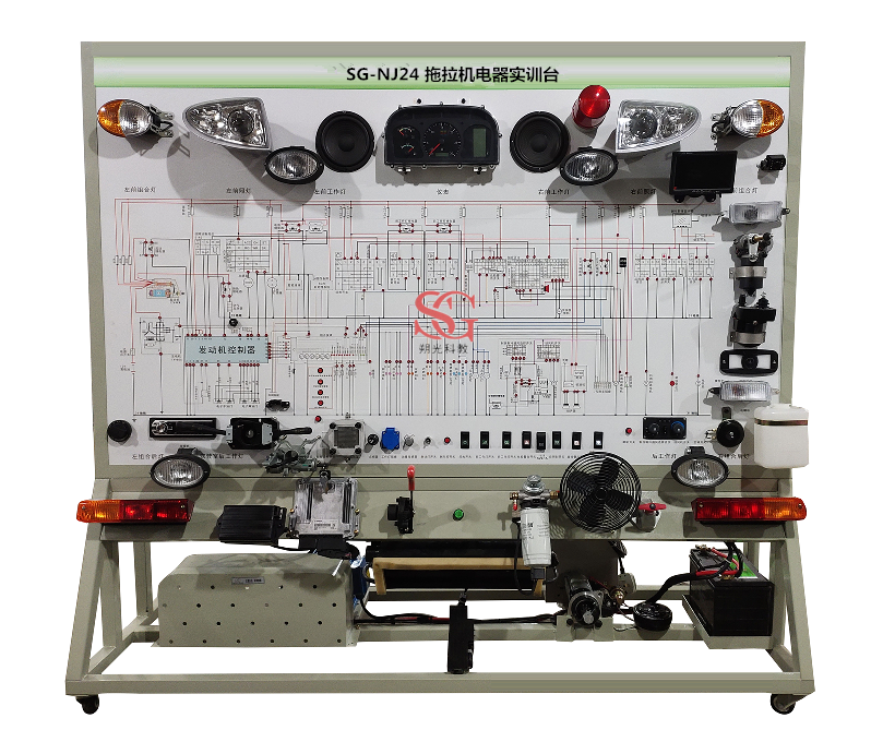 拖拉機(jī)全車電器實(shí)訓(xùn)臺(tái)以全新LX1804拖拉機(jī)整車電器實(shí)物為基礎(chǔ),充分展示儀表系統(tǒng)、燈光系統(tǒng)、雨刮系統(tǒng)、喇叭系統(tǒng)、起動(dòng)系統(tǒng)和充電系統(tǒng)等電器各系統(tǒng)的組成結(jié)構(gòu)和工作過(guò)程。能夠滿足拖拉機(jī)培訓(xùn)期間對(duì)整車電器理論和維修實(shí)訓(xùn)的教學(xué)需要。