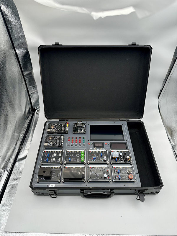 單片機傳感器綜合實訓平臺是由單片機系統(tǒng)、電源模塊、顯示模塊、傳感器功能模塊、儀器儀表等組合為一體的傳感器綜合測試系統(tǒng)。實訓平臺由實驗箱和附件包兩部分組成。
